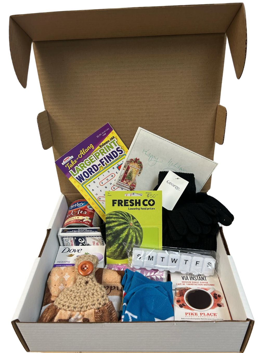Why should I include a grocery gift card? When we started this campaign in 2016, it became obvious to us that seniors with lower incomes struggle with the cost of groceries. They can usually only afford the basics, and rarely can they afford fresh fruit and vegetables. A gift card valued at $25 can buy a good amount of groceries from a budget-friendly grocery store.
